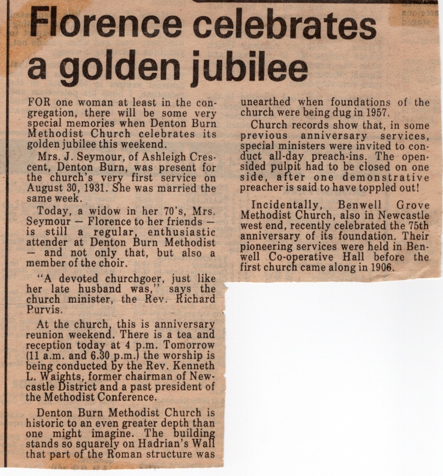 Both of the Methodist Chapels at Denton Burn were built on the line of the old Roman Wall and today special permission is required for any excavations into the ground.